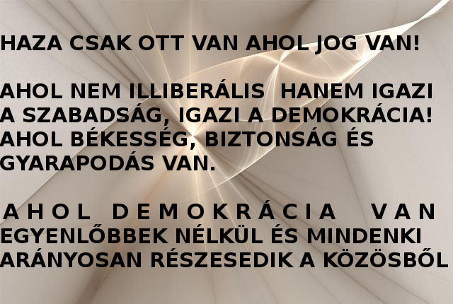 Él a remény, hogy eljön az idő, amikor egyet akar a politika és a nép. Amikor szabadságot, demokráciát, jólétet hozó törvények és tettek garantálják Magyarországon az ország felemelkedését, az egyén boldogulásának széleskörű lehetőségét, azt, hogy a jólét és ne a szűkölködés legyen a meghatározó.
